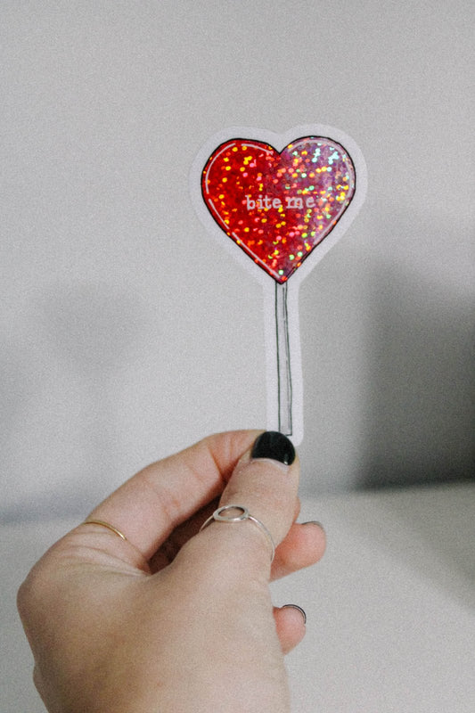 Bite Me Lollipop Glitter Sticker