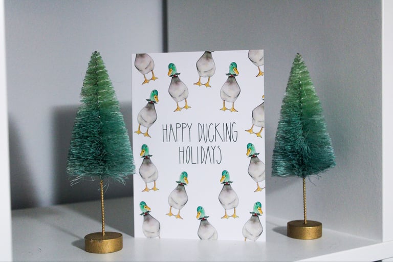 5 x 7 watercolor greeting card printed on eco friendly paper, comes with a kraft envelope, and packaged in a compostable plastic sleeve.