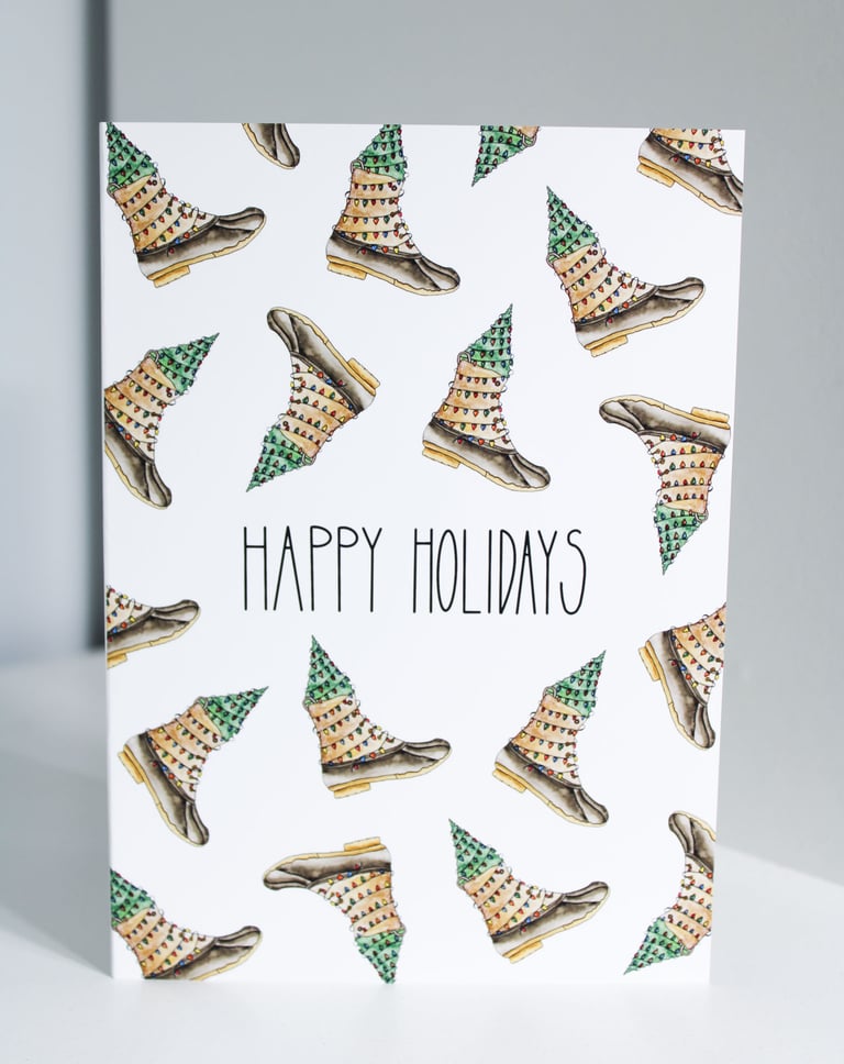 5 x 7 watercolor greeting card printed on eco friendly paper, comes with a kraft envelope, and packaged in a compostable plastic sleeve.