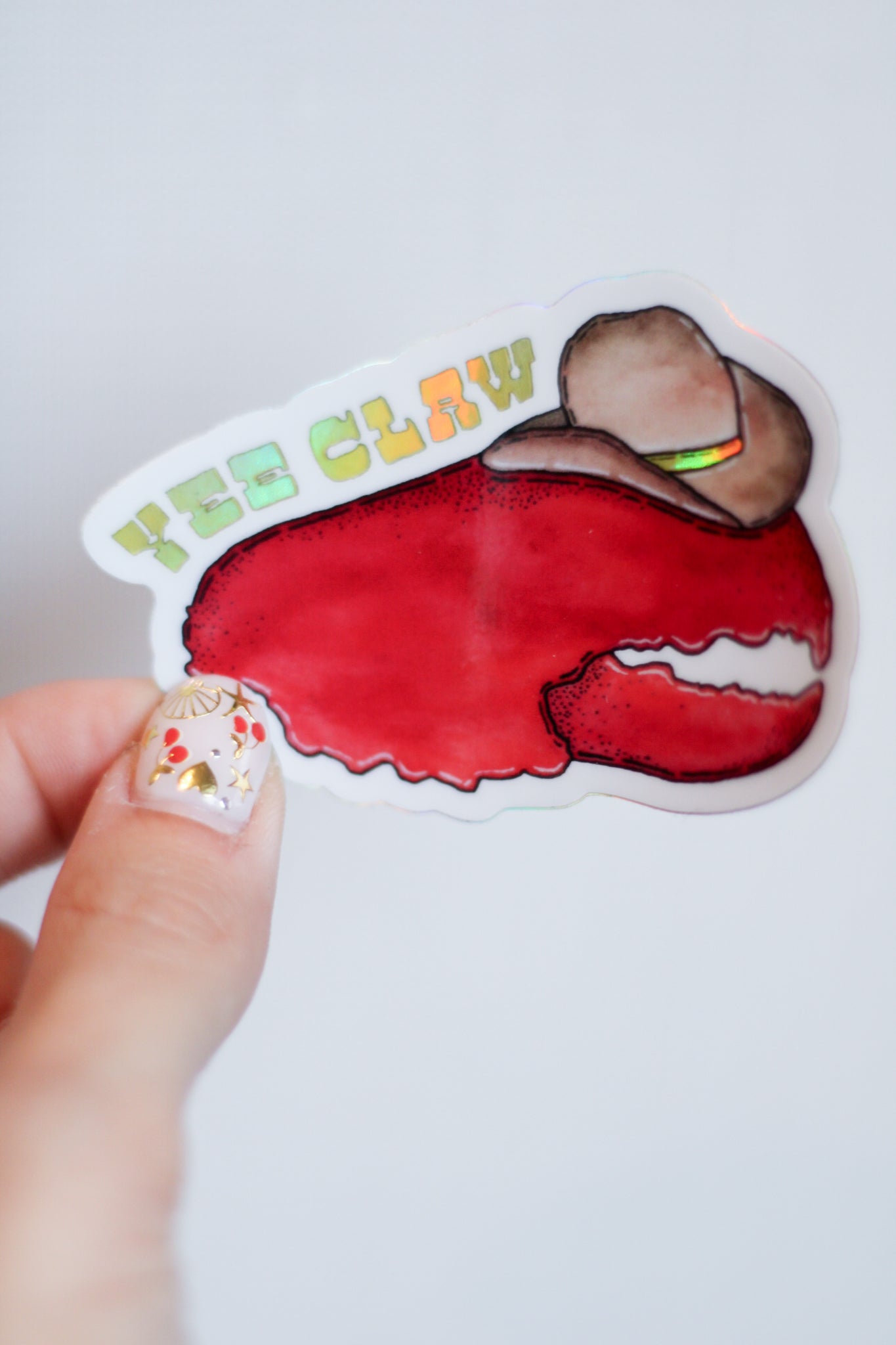 Featuring a holographic yellow: Yee Claw + band on hat. These decals are waterproof, weatherproof, and dishwasher safe. Makes the perfect addition to cars, water bottles, journals, and more!